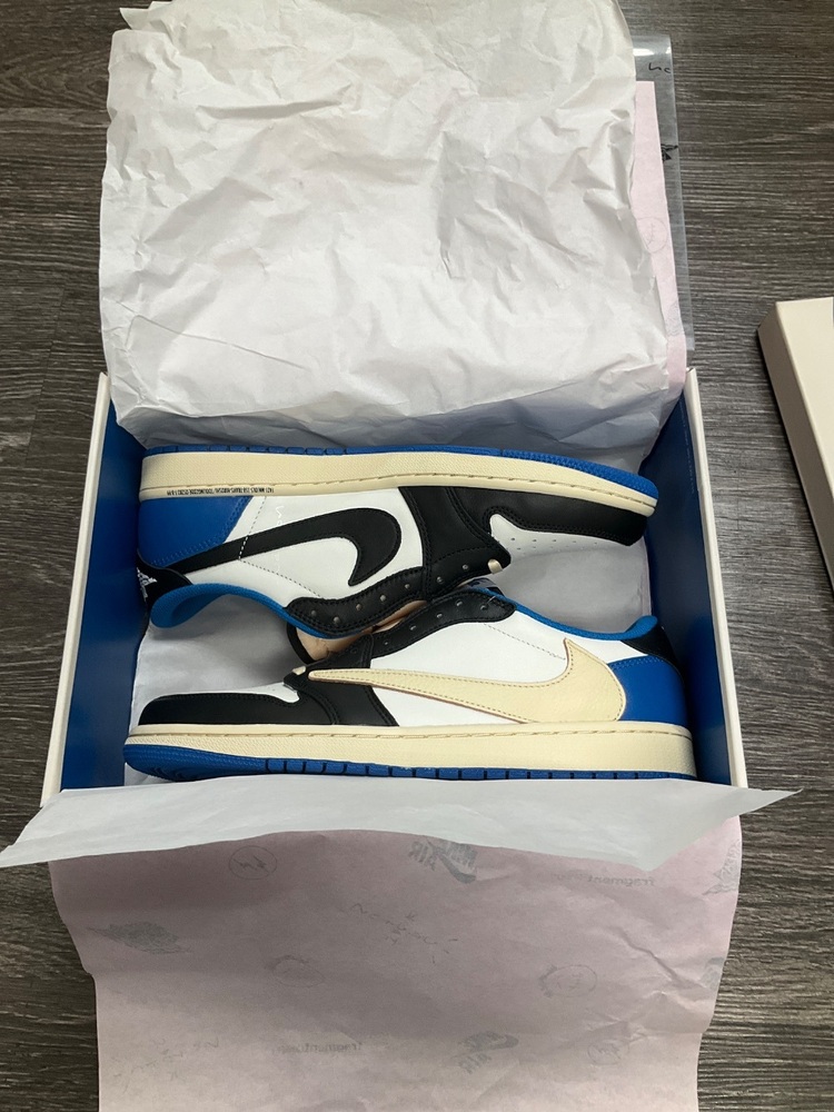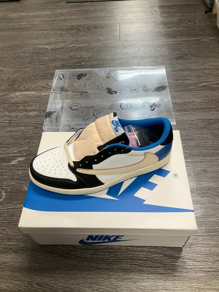 Jordan 1 Retro x Fragment Design x Travis Scott Low Blue - Size 10 DM7866-140 with original box Authenticated