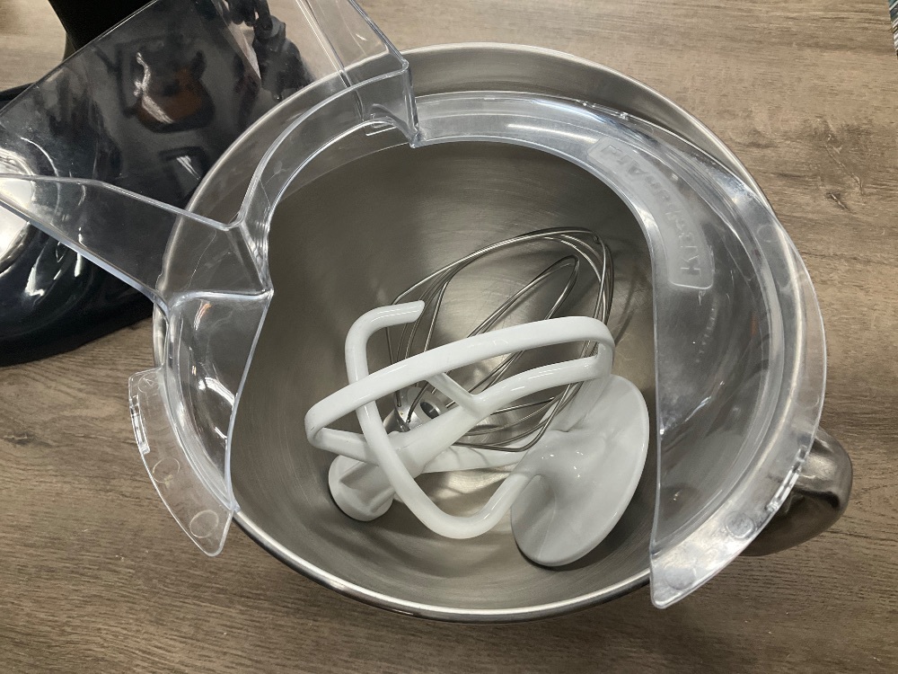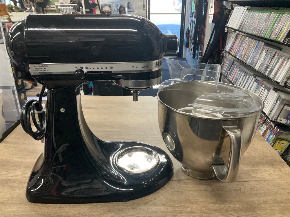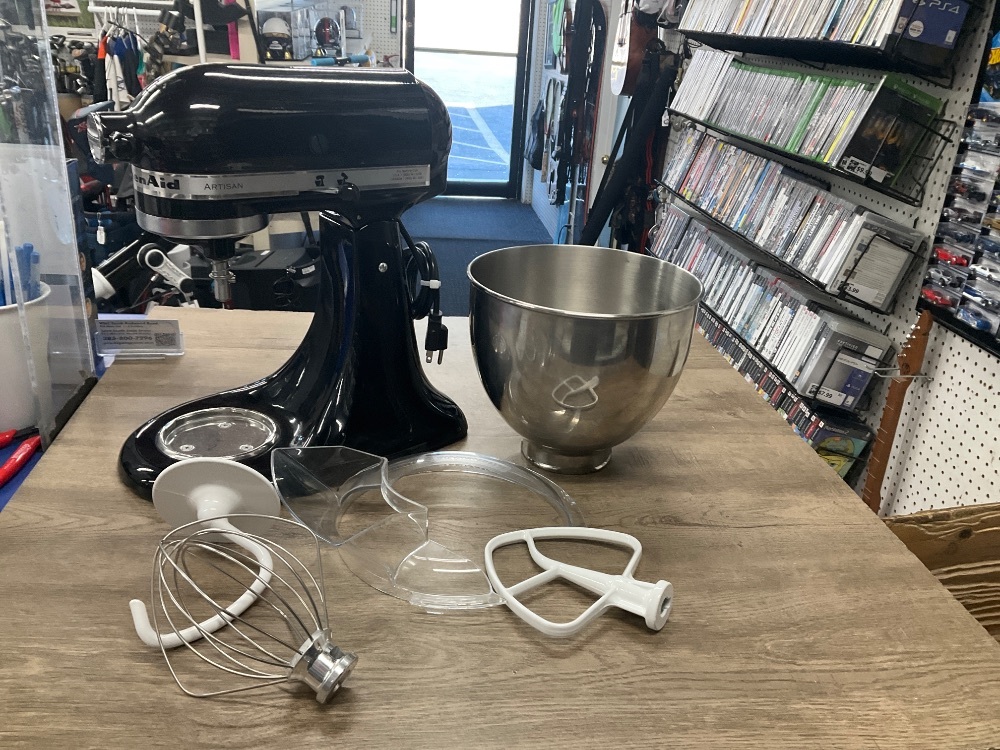 KitchenAid Onyx Black 5-Quart Artisan Stand Mixer includes the original OEM bowl and pour shield. Features powerful motor, durable design, and versatile attachments for mixing, whipping, and kneading. Perfect for home bakers seeking reliability and style in a compact, easy-to-use appliance with extra accessories.