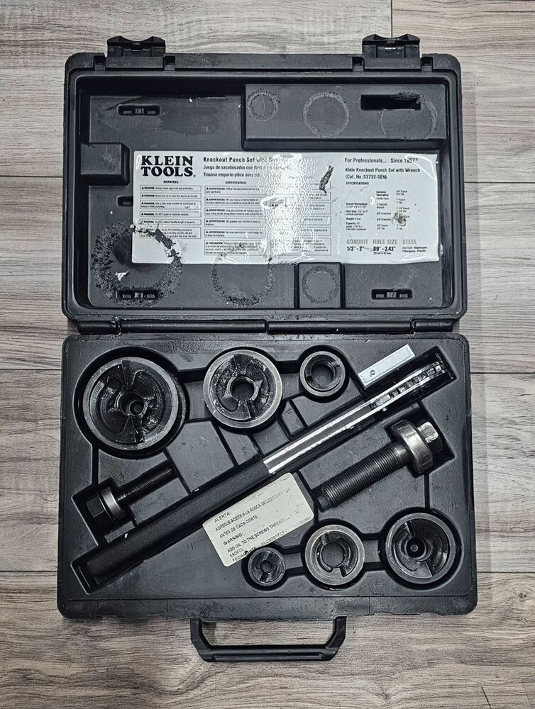 - Kit includes six different size knockout punches and dies, two draw studs and ratcheting box end wrench
