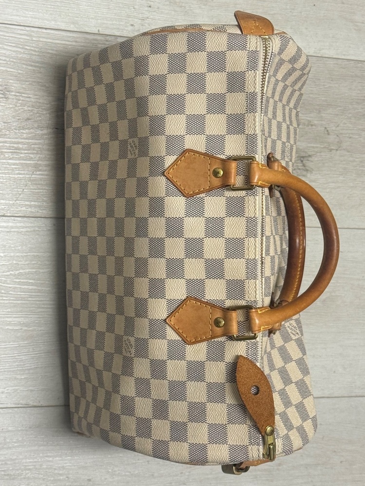 Experience the pinnacle of sophistication with the Louis Vuitton Azur Speedy 35 Handbag. This impeccable accessory showcases the brand's timeless Damier Azur canvas, exuding an air of refined elegance. Its generous interior effortlessly accommodates essentials, embodying luxurious functionality. It's not just a handbag - it's Louis Vuitton.