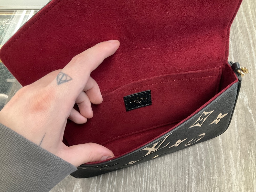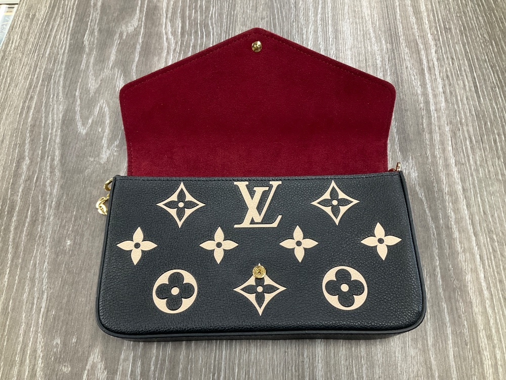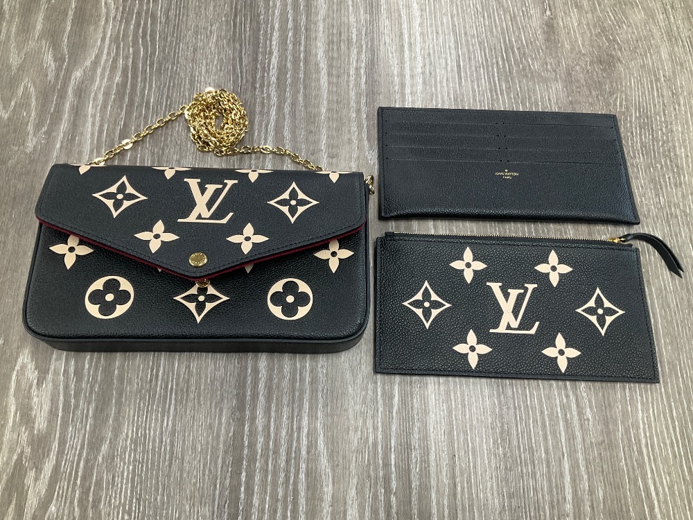 LOUIS VUITTON POCHETTE FELICIE MONOGRAM EMPREINTE LEATHER PURSE BAG WITH REMOVEABLE ZIPPER POCKET AND CARD SLOT