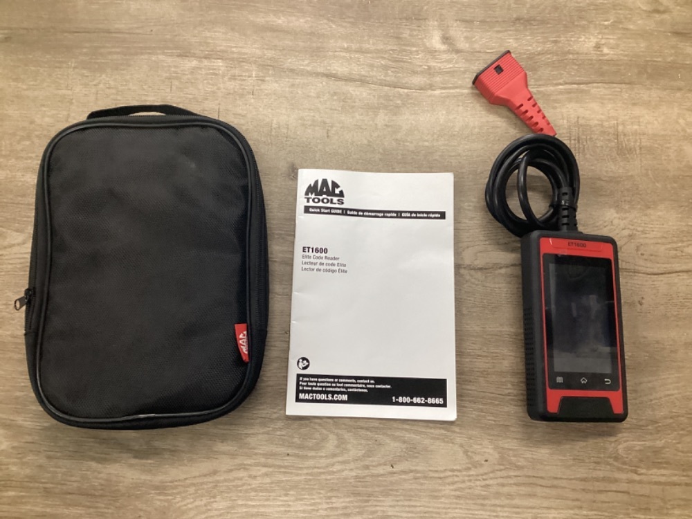 MAC TOOLS ET1600 Elite Code Reader includes soft carry case for convenient portable diagnostics and code readings.