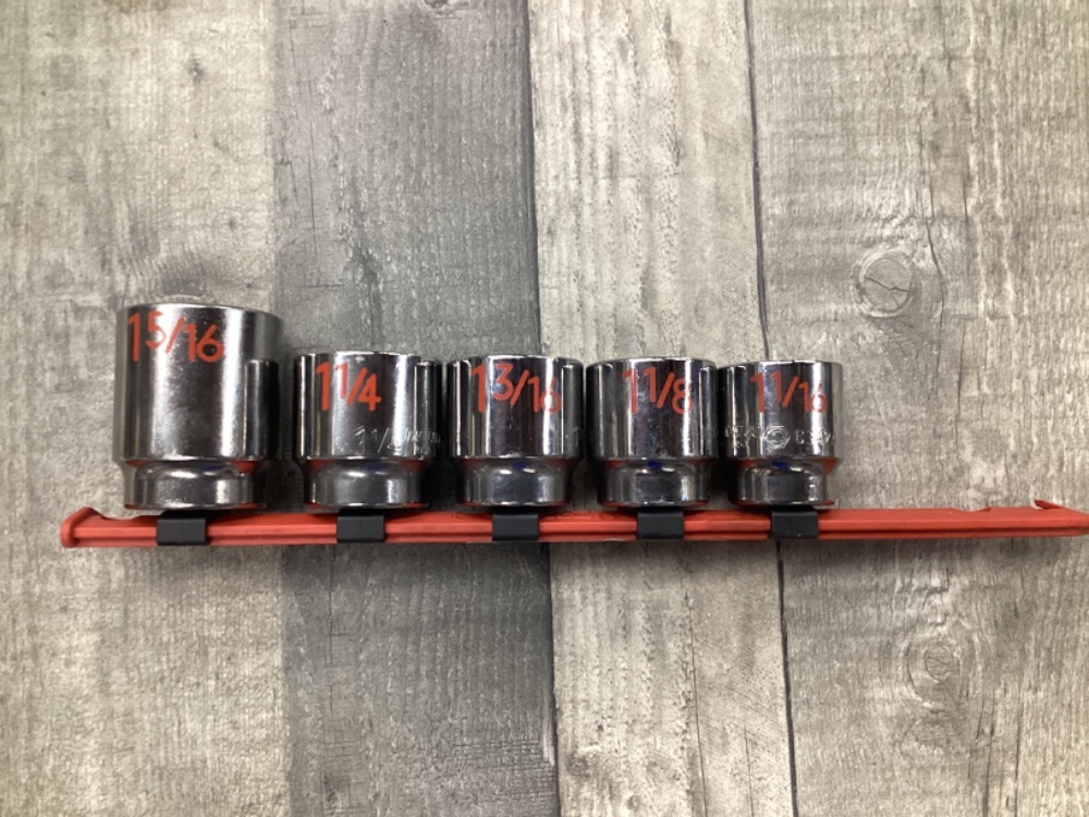 This Matco Tools Socket Set includes 5pc 1/2 SAE 12-point sockets. Sizes range from 1-1/16 to 1-5/16. Comes on a storage tray.