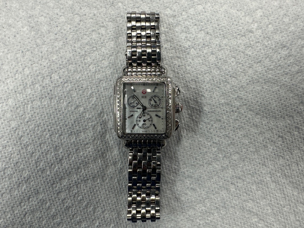 Elevate your style in seconds with the MICHELE 71-6000 DECO Watch. A symphony of elegance and time-keeping precision, this dazzling accessory captivates with its diamond-studded bezel and mother of pearl dial. Limited edition, it adds an extraordinary hint of opulence to any ensemble. Embrace exclusivity. Wear time as your best adornment.