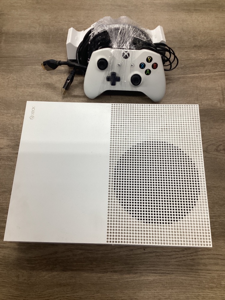 INCLUDES POWER CORD, HDMI, & ONE WHITE WIRLESS CONTROLLER W/ CHARGING STAND