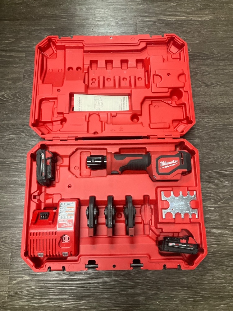 MILWAWKEE 2674-20 SHORT THROW PRESS TOOL KIT IN CASE WITH 2 BATTERIES AND CHARGER