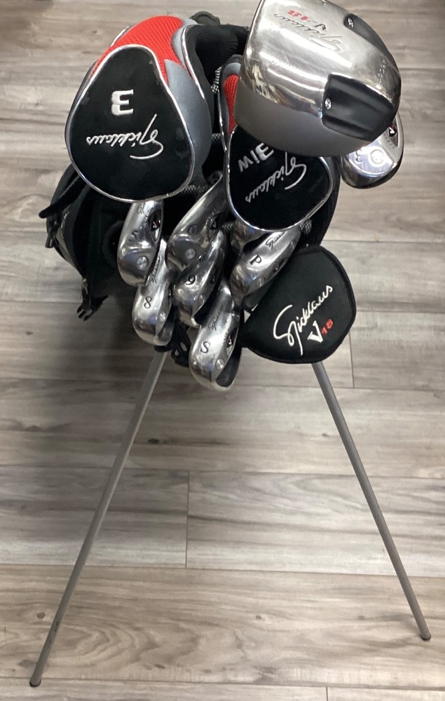 COMES WITH DRIVER, 3 WOOD, 3 HYBRID, 4 HYBRID, IRONS 5-9, P, S, PUTTER, AND GOLF BAG