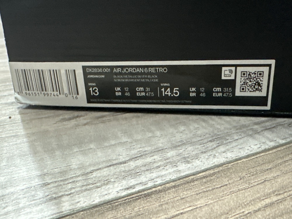 NIKE DX2836-001 JORDAN 6 RETRO CHROME SZ:13