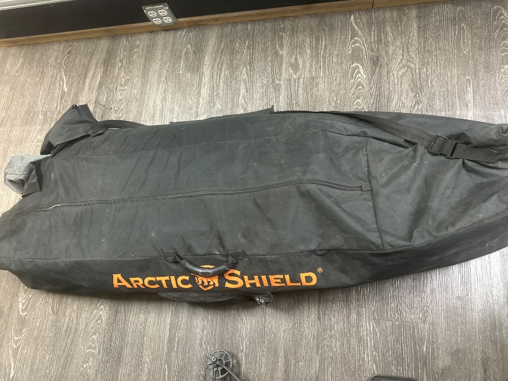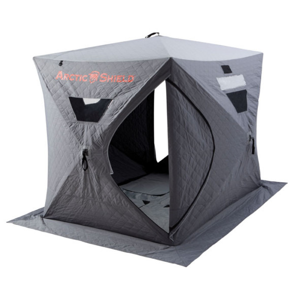 The Onyx Arctic Shield Double Layered Ice Fishing Tent offers durability with its 4 ice anchors and sturdy fiberglass poles. It's resistant to mildew and fading, ensuring long-term usage. The 72x96x84 tent features 4 windows for visibility and ventilation. It weighs at 40 lbs, making it convenient for transportation. |