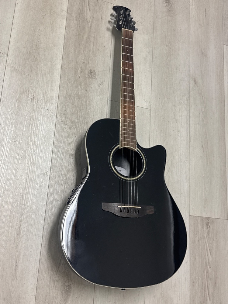 The Ovation CS245 Celebrity Guitar is an acoustic-electric guitar known for its unique rounded back design, superior sound quality, and durability. It features a built-in pickup and preamp system, spruce top, and nato neck for a rich and dynamic tone, ideal for both beginners and experienced players.