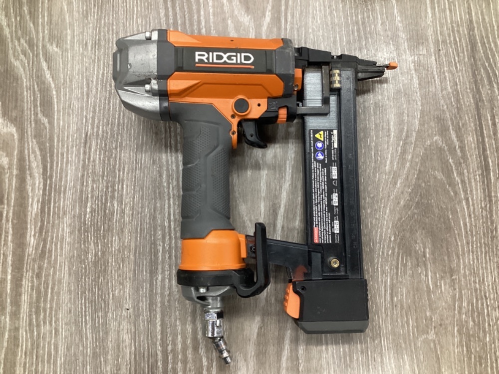 The RIDGID Pneumatic 18GA narrow crown stapler utilizes 3/8" - 1 1/2" staples. Designed for precision, reliability and durability for various carpentry and woodworking tasks.