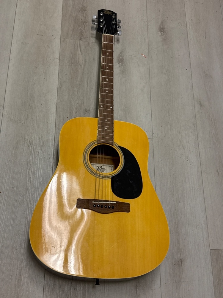 The Rogue RD80 Acoustic Guitar is a full-sized, dreadnought style instrument, offering a deep, rich tone. It is built with a spruce top and mahogany back and sides, and sports a rosewood fretboard. Ideal for beginners due to its affordability and playability, the RD80 offers an impressive sound quality.