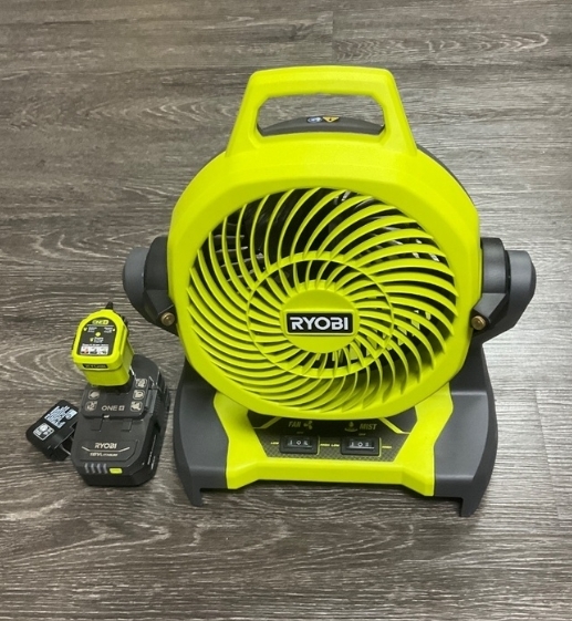 RYOBI PCL851 ONE+ 18V CORDLESS 7-1/2 in. BUCKET TOP MISTING FAN KIT IWTH 1.5AH BATTERY AND CHARGER
