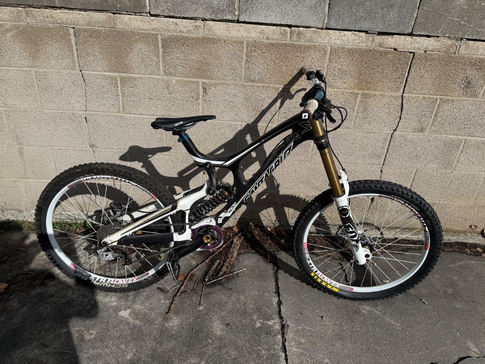Experience extreme speed and control with the Santa Cruz V10 downhill bike. Equipped with Fox shocks for superior suspension, and a SRAM X9 driveline for precise gear shifts. Ultimate performance for off-road biking enthusiasts.