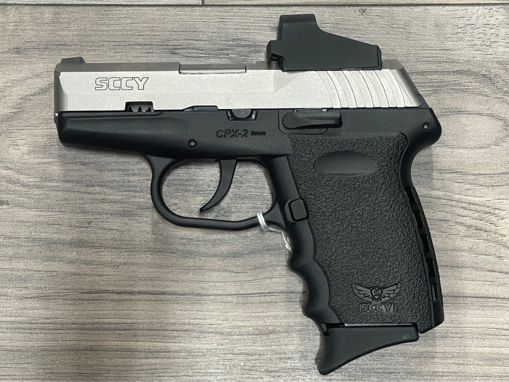 The SCCY CPX-2 9MM pistol features a compact design ideal for concealed carry. It's partnered with a high-performance Crimson Trace Red Dot sight for improved targeting accuracy. Notable for its lightweight, reliable shooting function, and ample 10+1 round capacity, it's a prime choice for personal defense weaponry.