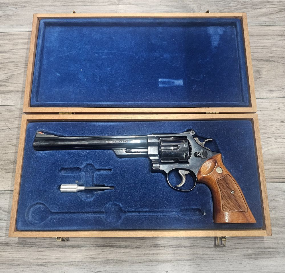 Iconic Smith and Wesson 29-2 .44 Magnum, complete with original box. Renowned for power and precision, this revolver offers classic appeal and collector's value. Perfect for enthusiasts or collectors looking for timeless craftsmanship.
