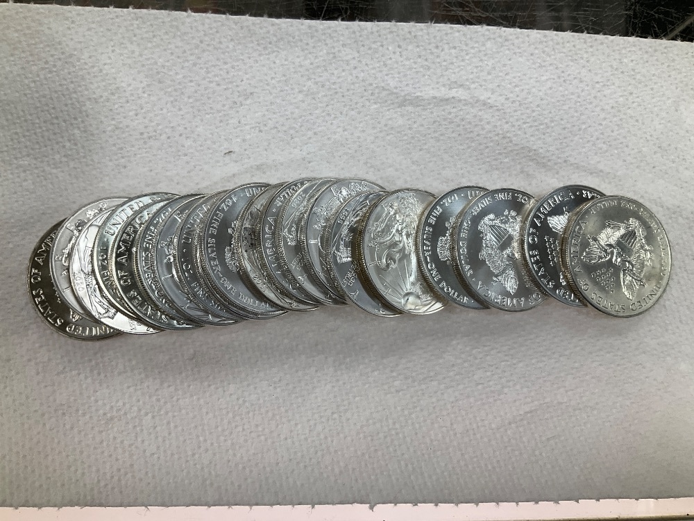 TUBE OF SILVER EAGLES (MIXED DATES )