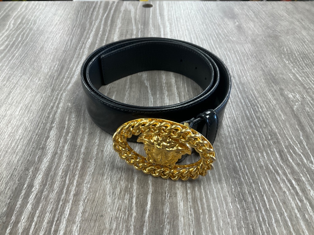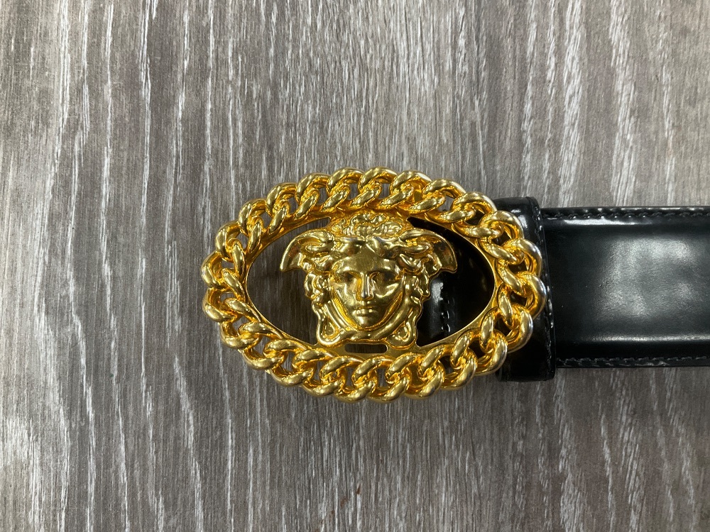 VERSACE HEAD EMBLEM BUCKLE ON BLACK LEATHER
