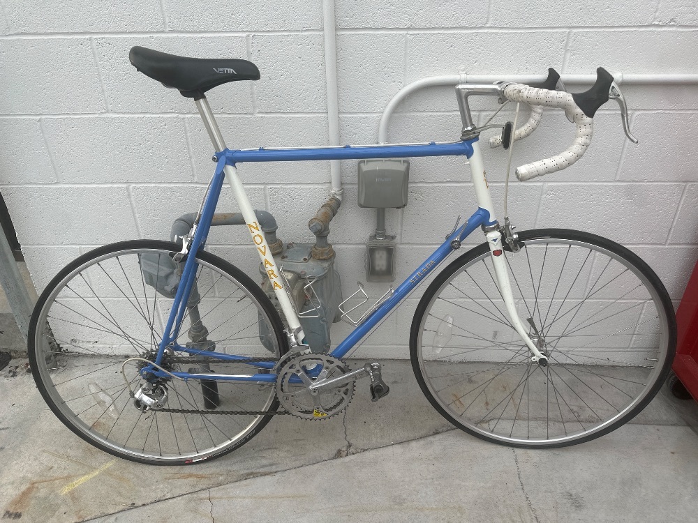 Classic mid-80's Novara Strada road bike, potentially from 1987. Constructed from Japanese steel and produced by REI. An enduring symbol of vintage cycling.