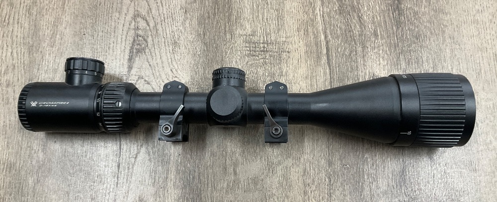 The Vortex Crossfire II 6-18x44 Firearm Scope offers high-performance shooting with 6-18x magnification, 44mm lens, and adjustable objective for precision aiming. It features a fast-focus eyepiece, multi-coated lenses, and resettable MOA turrets. The scope is waterproof, fog-proof, and shock-proof, ensuring reliable use in any weather conditions.
