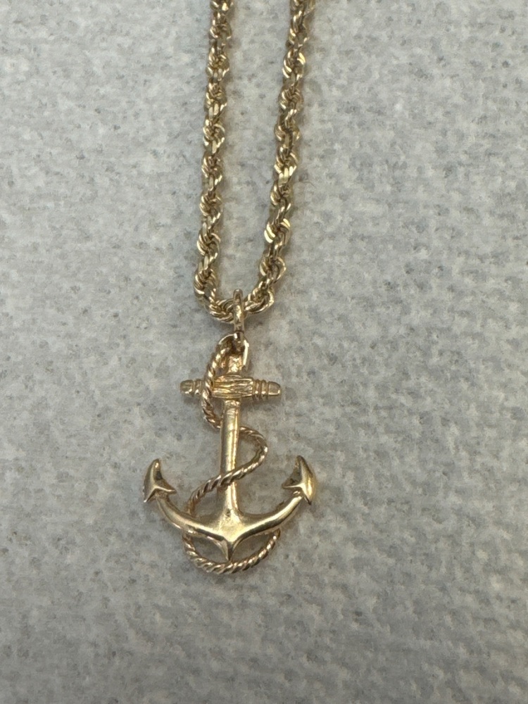 Yellow Gold 14kt Yellow Rope 9.32dwt Necklace ANCHOR PENDANT ON ROPE CHAIN